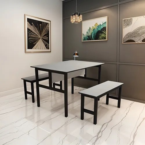 Conjunto Mesa para Refeitório 4 Lugares com Bancos Separado